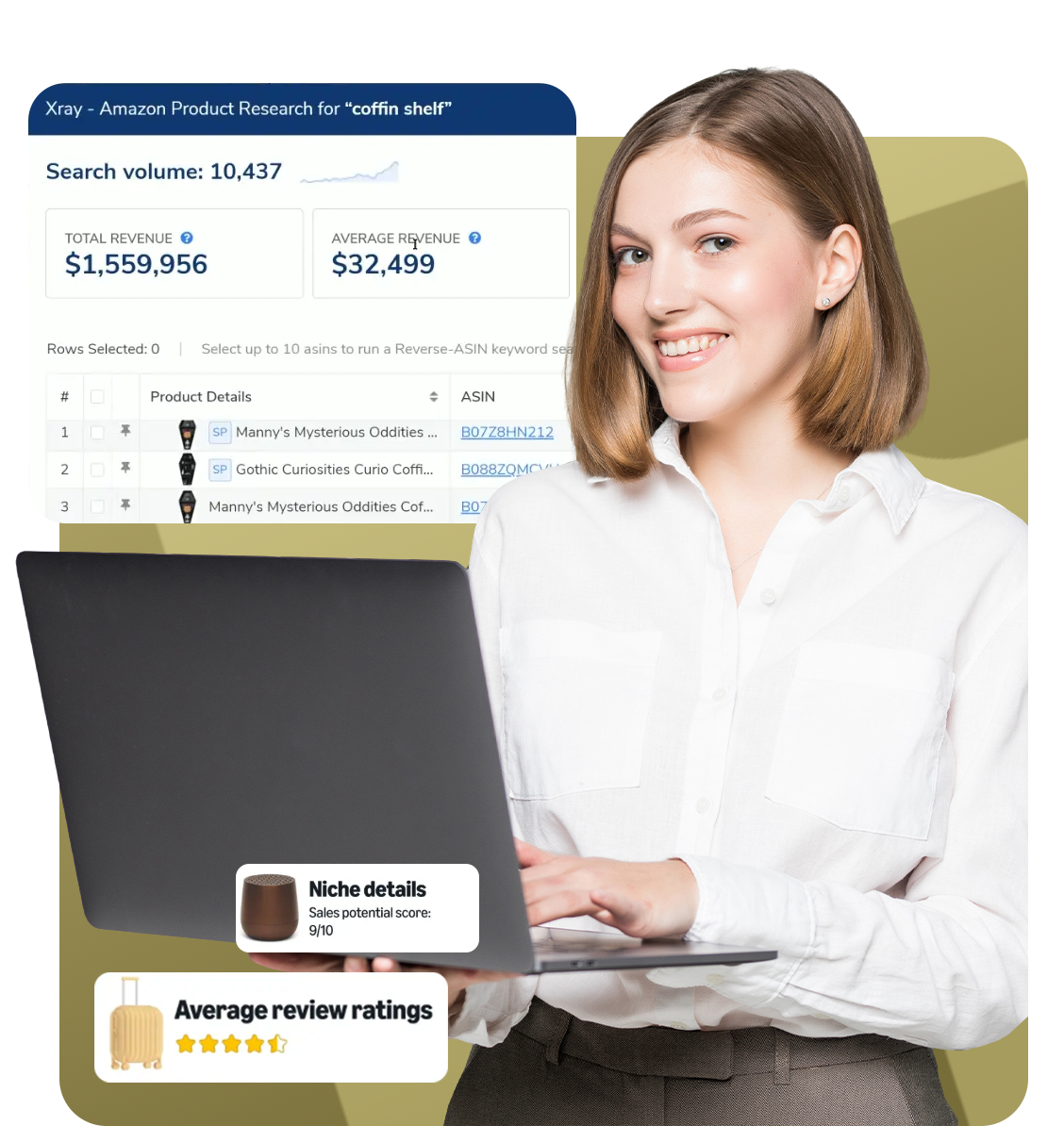 We use Helium 10 for in-depth keyword research, listing optimization, competitor tracking, and identifying new product opportunities.
